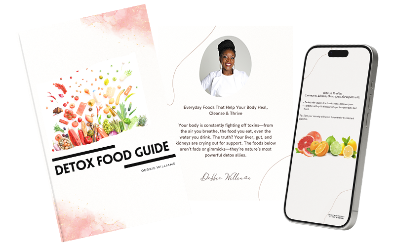 Hey love, I’m Debbie Williams — a board-certified nutritionist and holistic health coach with over a decade of experience helping women and men detox their bodies, heal their gut, balance their hormones, and finally get their energy (and confidence) back.