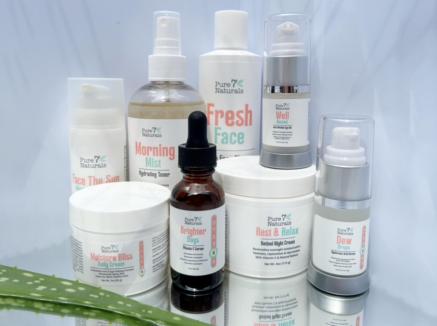 At Pure7Naturals, we keep it simple and powerful. Our formulas are packed with nature’s most effective ingredients to support real skin results, not just trends. If it doesn’t nourish, protect, or glow-up your skin, it doesn’t make the cut. We’re here to help you feel confident in skin that’s healthy, radiant, and truly cared for.
